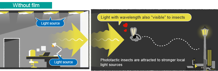 Visual image of lighting when OPTRON film (Insect Repellent Clear) is applied